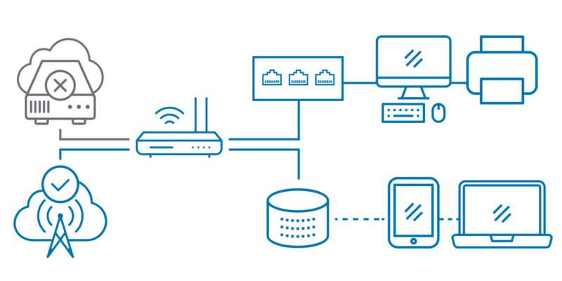 Using wireless as a backup to your fiber, cable, or DSL connection works because internet service is provided by a completely separate system that automatically switches over to a secure, high-speed wireless connection.